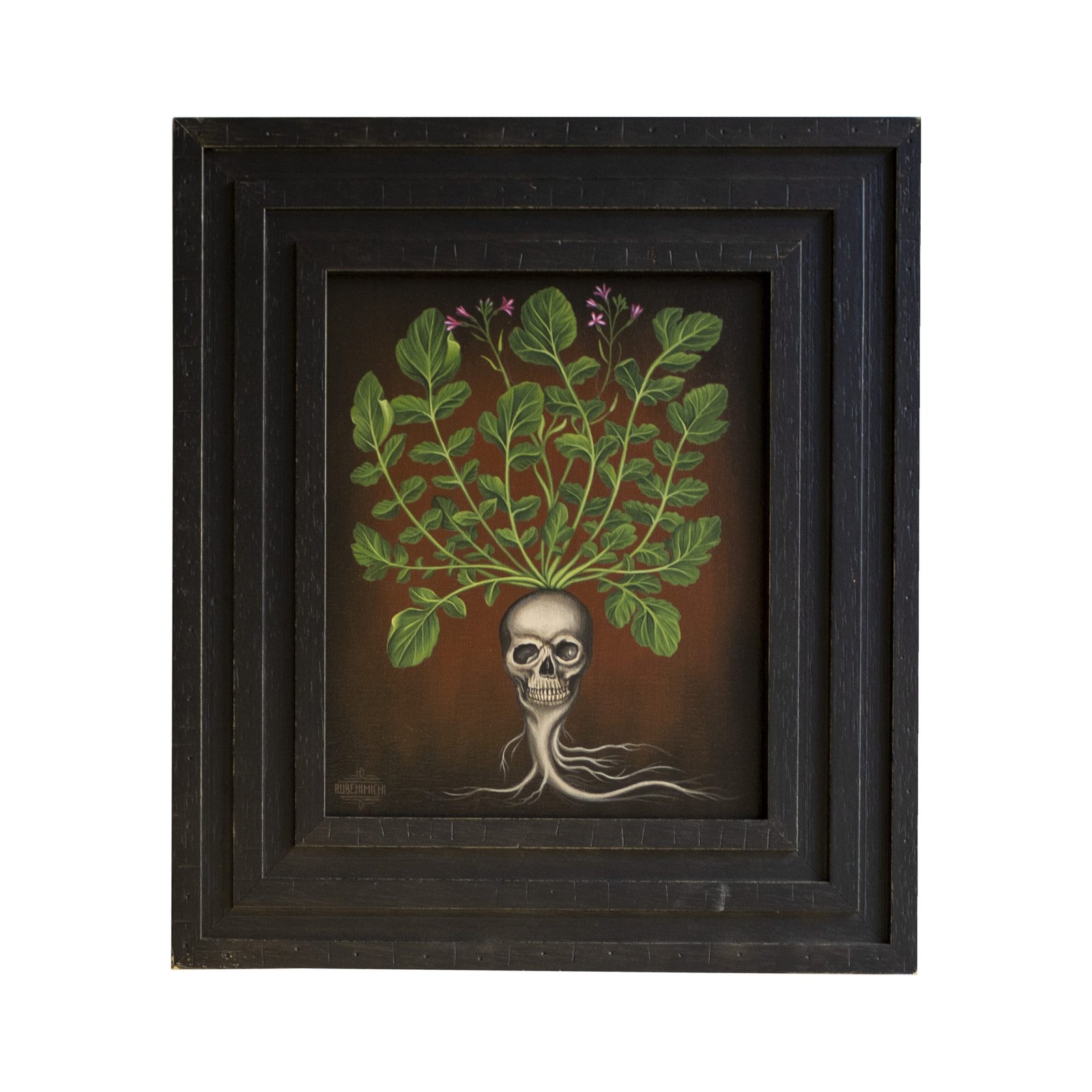 Bestiario I,  Rubenimichi, Acrílico sobre lienzo, con marco grueso de madera lacada. Pieza única pintada de forma artesanal.
