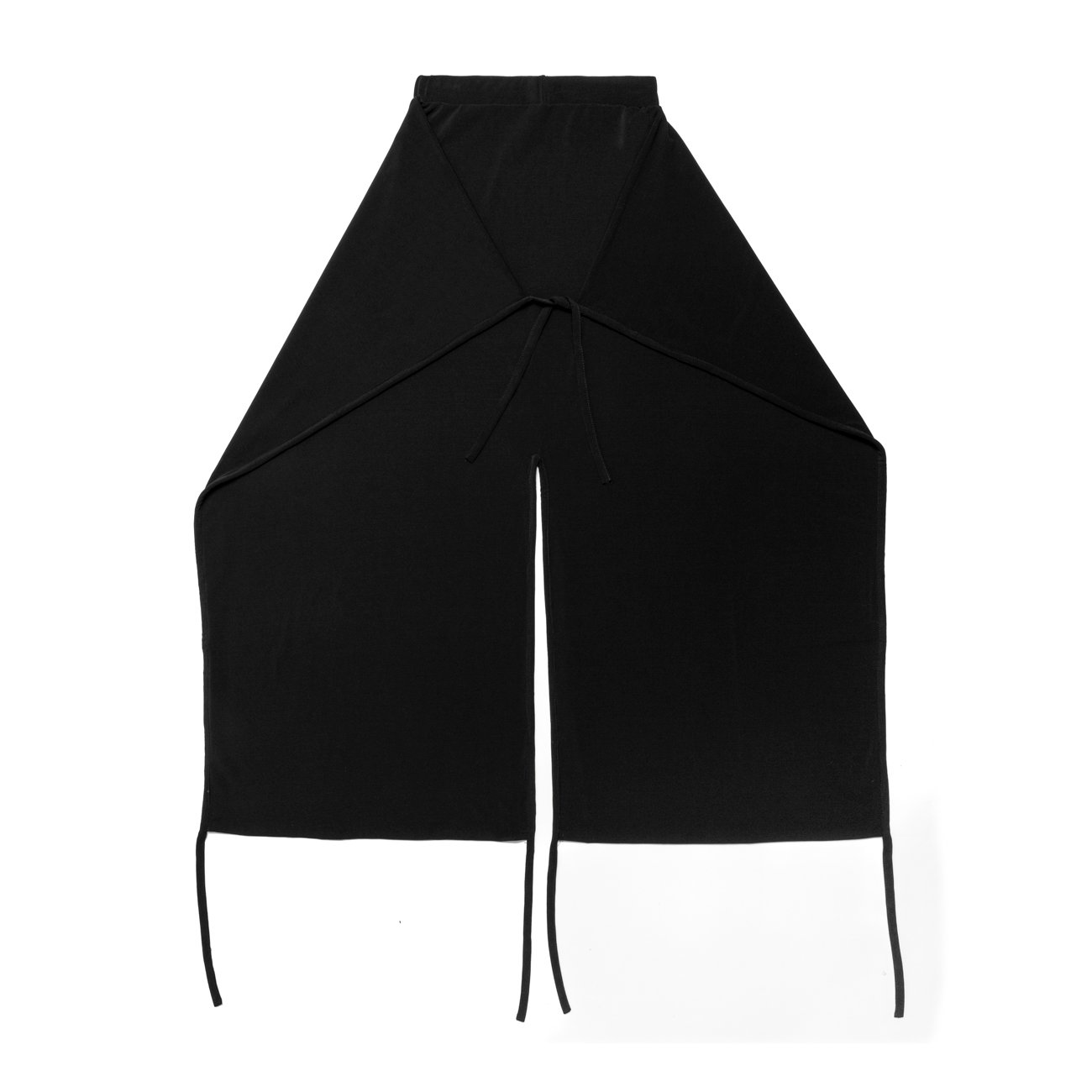 Pantalón amplio transformable, de forma rectangular con tiras en cadera y bajo para generar diferentes siluetas. Realizado con patrón Zero Waste Fashion, que optimiza el ancho completo del tejido.