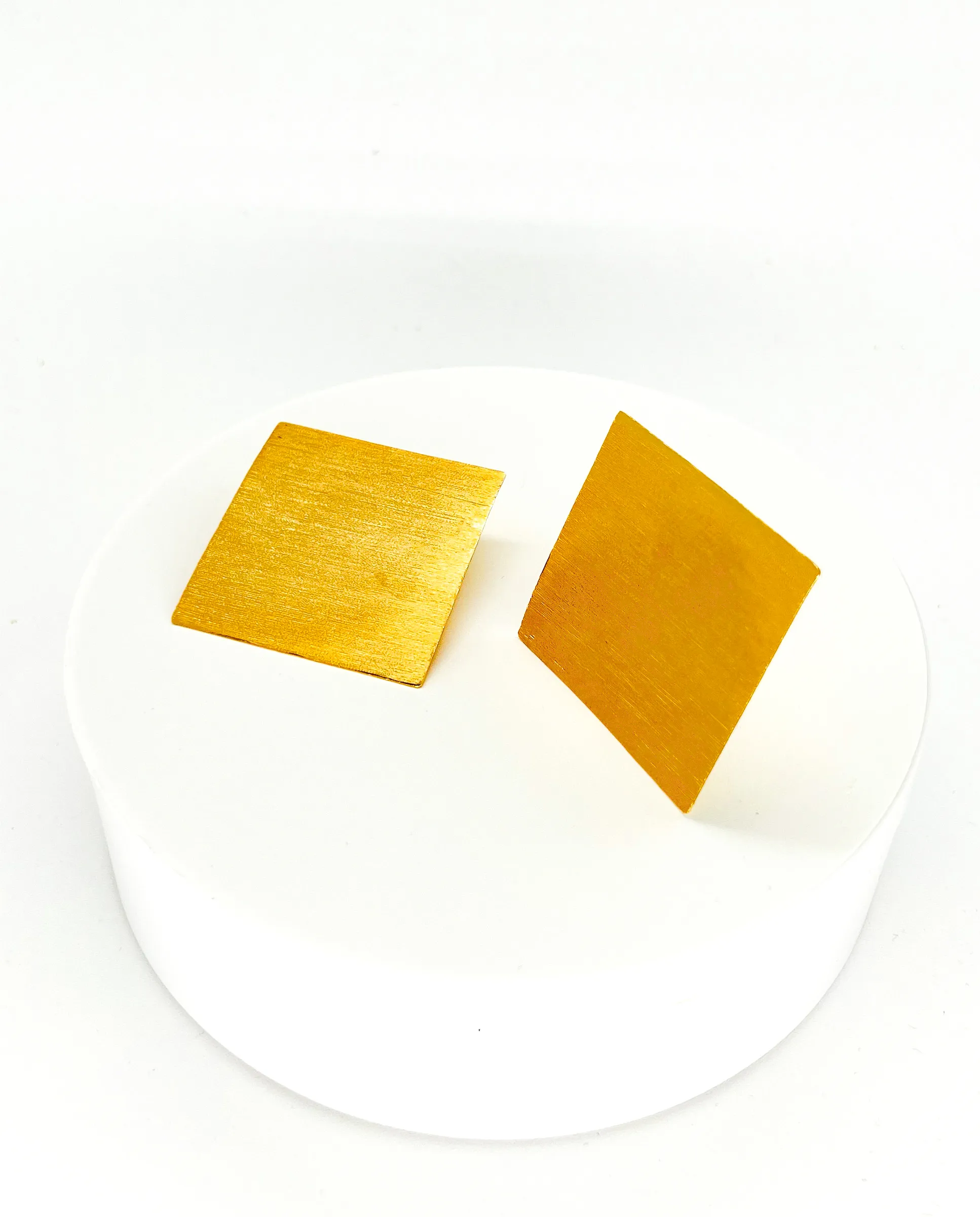 Pendientes cuadrados de 5x5cm, realizado en Brass con baño de plata color dorado.