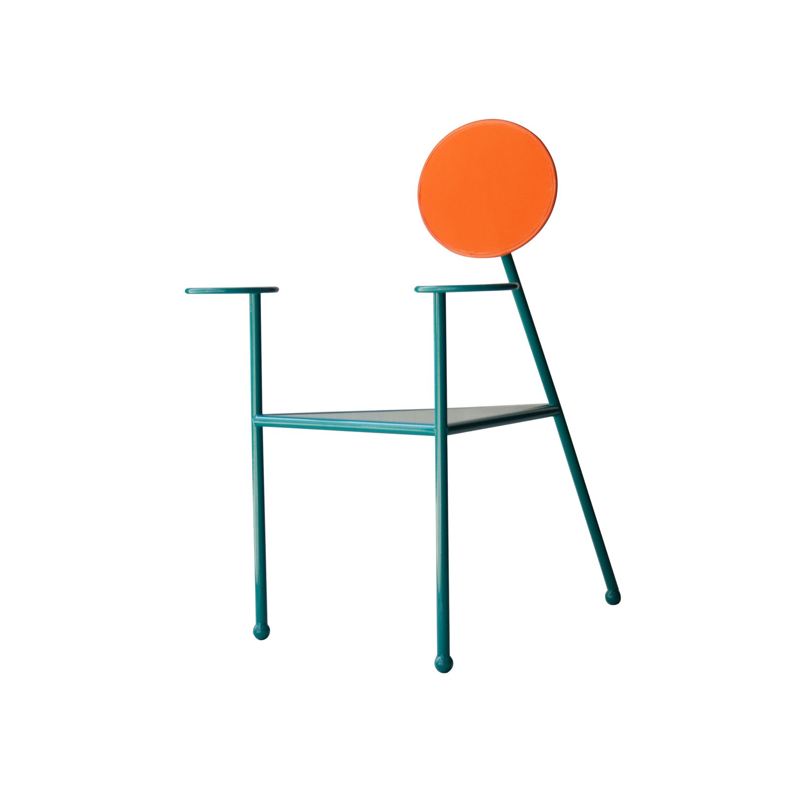 Pareja de sillas modelo “Hormiga” diseñada por Kresta Design. Realizada en estructura metálica lacada en dos colores.